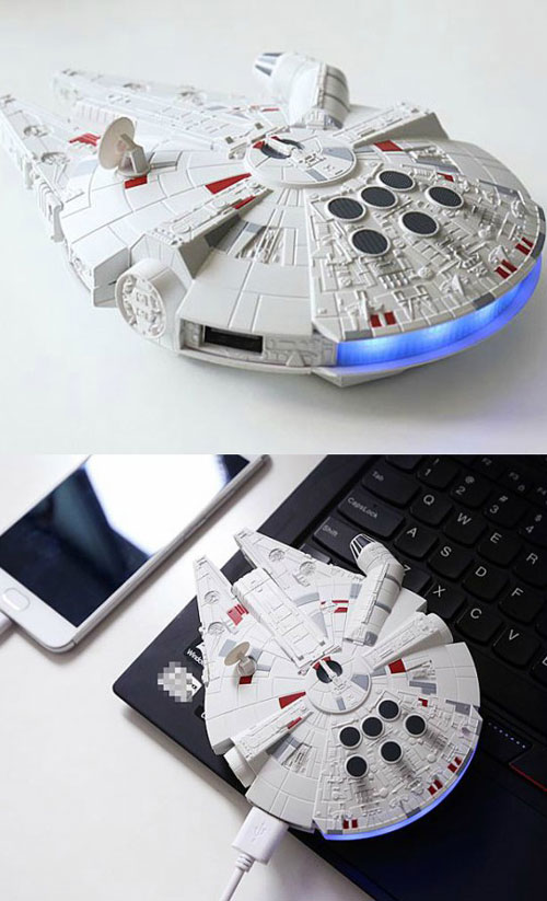Banque d’alimentation Millennium Falcon 10000mAh : un chargeur de téléphone portable avec batterie haute capacité et design compact. Il a une sortie 5V / 2A.