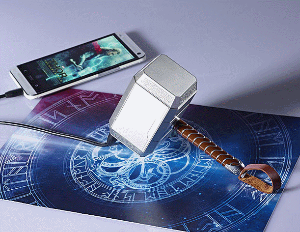 infoThink Thor Hammer Power Bank : un chargeur d’iPhone pour les fans de Marvel. Il comporte 7 effets d’éclairage et du son lorsque vous le faites osciller. Il est disponible avec une batterie allant jusqu’à 10 400mAh.