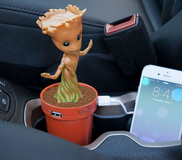 Chargeur de voiture Marvel Groot Dancing : un autre chargeur de téléphone mignon pour les fans de Marvel. Il danse pendant que votre téléphone se charge dans votre voiture. Il comporte 2 ports et propose 2,1 ampères pour charger deux appareils simultanément.