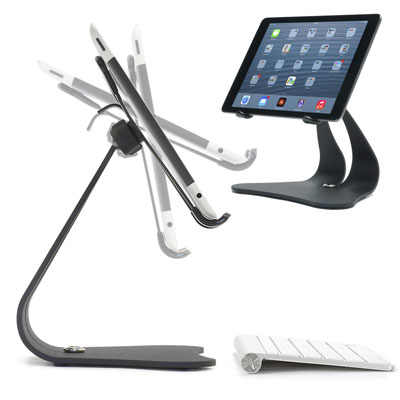 L’OZAKI iCarry Excavator : un support à angles multiples pour votre tablette. Ce support de bureau en alliage d’aluminium rotatif à 360° soulève votre tablette à un niveau de regard ergonomique.
