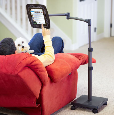 Le LEVO Deluxe iPad Floor Stand : un support polyvalent qui vous permet de vous asseoir, de vous allonger ou de vous coucher pour regarder du contenu sur votre tablette. Il vous permet d’utiliser votre tablette en mode portrait ou paysage.