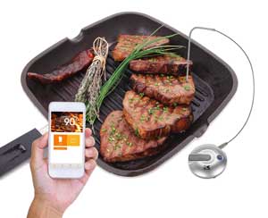 Les iDevices iGrill2 : un thermomètre Bluetooth qui vous permet de suivre la température de votre nourriture sur votre smartphone. Il a une portée de 150 pieds et une autonomie de batterie d’environ 200 heures.