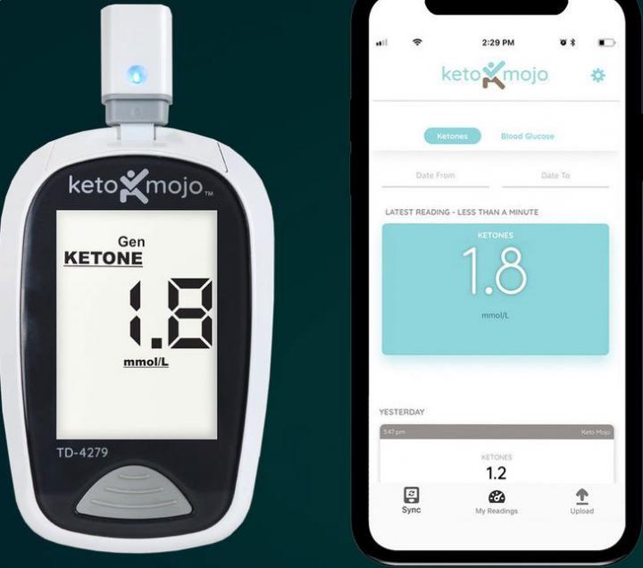 Keto-Mojo : un compte-gouttes de cétones et de glucose relié à votre smartphone pour une prise en charge facile des données. L’application permet de basculer entre le glucose et les cétones et de vérifier les données par période. Il peut stocker jusqu’à 1000 tests.