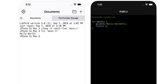 LibTerm : une interface de ligne de commande pour iOS qui prend en charge de nombreuses commandes courantes, telles que uptime, uname, compress, nm, clear, sh, help, exit, open, package, edit, et bien plus encore. Elle dispose d’un éditeur graphique avec une mise en évidence de la syntaxe.