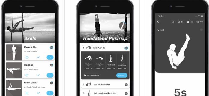 Thenics : une application iPhone de calisthénie avec de nombreuses compétences gratuites à maîtriser (y compris les leviers avant/arrière, les squats en pistolet et les push-up de mains en équilibre). Les utilisateurs plus avancés peuvent essayer le squat de crevette, le drapeau humain, la main en équilibre d’une main et d’autres mouvements.