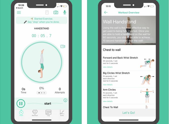 Handstand Journey : une application iPhone de mains en équilibre qui vous aide à rendre votre corps plus fit sans aucun équipement de fitness. Elle propose 4 objectifs à choisir (mains en équilibre avec assistant mural, mains en équilibre, pression/push-up de mains en équilibre). Elle dispose d’une bibliothèque de 50 exercices.