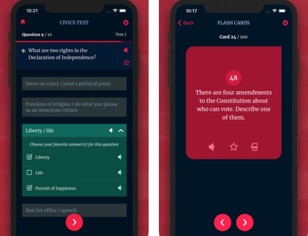 Test de citoyenneté américaine 2023 Audio : un guide d’étude pour le test de civisme de l’USCIS pour iPhone. Il comprend des flashcards avec 100 questions. Vous pouvez sélectionner le nombre de questions pour vos tests de pratique. Il suit les statistiques de vos tests de pratique.