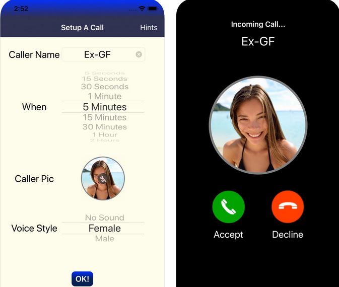 #1 Fake Call : une application de faux appels iPhone qui vous donne un grand contrôle sur vos appels. Vous pouvez changer le style de voix, le temps de retard et la photo de l’appelant facilement.