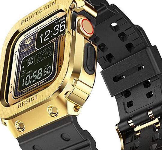 L’amBand Apple Watch 7 Case est un étui en acier inoxydable robuste avec une sangle militaire TPU. Il est suffisamment solide pour protéger votre appareil contre les rayures et les chocs.