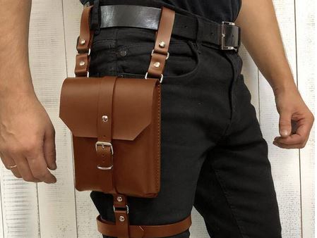 Le harnais de jambe Steampunk : un sac en cuir de style rétro qui se suspend à votre ceinture. Il dispose également d’une sangle ajustable pour s’adapter à la plupart des personnes.