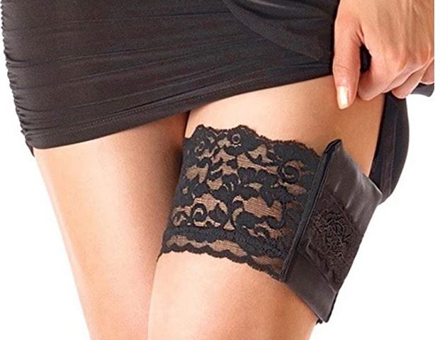 StashBandz : une jarretière pour téléphone avec 2 poches pour contenir votre appareil et d’autres objets. Elle dispose d’une poche en satin à l’extérieur et d’une poche en dentelle juste derrière.