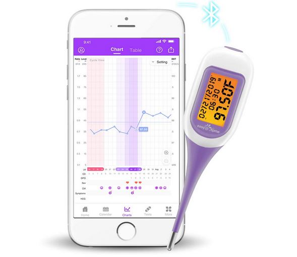 Easy@Home Basal Thermometer : un traceur de période et un thermomètre basal avec prise en charge iOS et Android. Il dispose d’un affichage à enlightened pour afficher vos lectures. Il combine avec l’application Premom pour graphiquer vos données. Il vous donne une lecture en moins de 2 minutes.