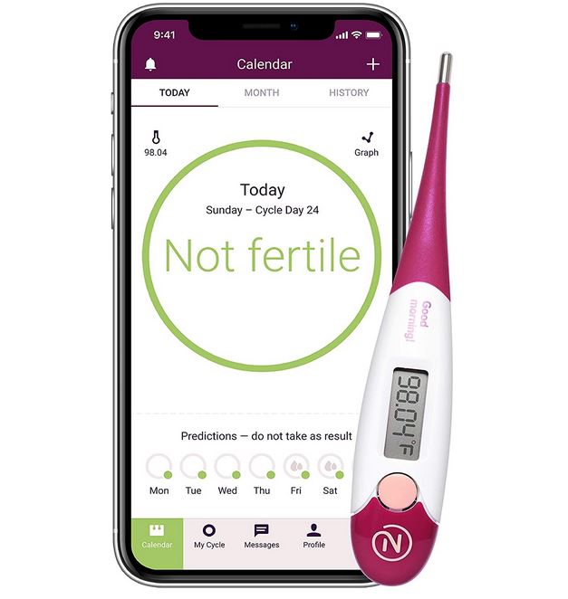 Natural Cycles Digital Birth Control : une application de gestion de la fertilité avec un thermomètre basal qui trouve vos jours les plus fertiles, afin que vous puissiez éviter la grossesse. Il peut également fonctionner pour les cycles irréguliers.