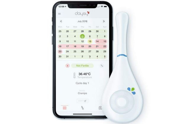 Daysy : un moniteur de fertilité compatible iPhone et un prédicteur d’ovulation qui peut mesurer votre température corporelle basale en 60 secondes. Il dispose d’une application qui vous fournit des détails sur votre cycle et vous permet de le partager facilement avec votre médecin. Il transfère vos données via Bluetooth.