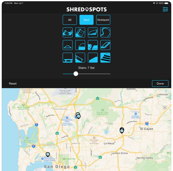 ShredSpots : cette application vous aide à trouver des spots de skateboard pour pratiquer. Vous pouvez les filtrer par obstacles et obtenir des informations détaillées et des directions.