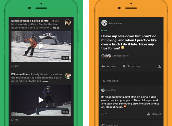 Stomp Sessions : cette application contient plus de 100 vidéos de tricks pour ceux qui s’intéressent au snowboard, au skateboard et au VTT. Elle vous permet de comparer vos vidéos à celles des professionnels pour identifier les domaines à améliorer.