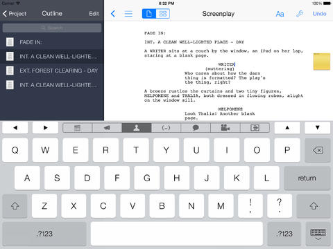 Final Draft Writer : une autre application pour écrire des scripts sur votre appareil intelligent. Il dispose de modèles utiles et propose une compatibilité avec les claviers Bluetooth. Vous bénéficiez également d’une mise en évidence des personnages, d’une prise en charge du PDF et de SmartType, qui mémorise les noms de personnages et les en-têtes de scène.