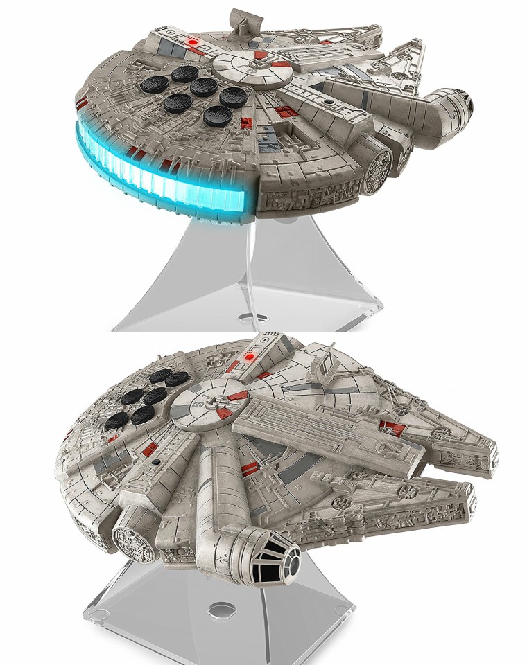 Enceinte Bluetooth Millennium Falcon : cette enceinte Star Wars vous permet de diffuser de la musique à partir de vos appareils préférés et de répondre aux appels téléphoniques. Elle s’allume lorsqu’elle est en cours d’utilisation.