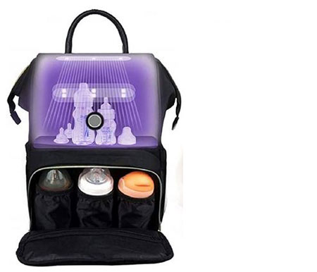 Le 4Young UV Disinfection Mummy Bag : un sac cool avec des lumières UV qui peuvent maintenir vos articles stérilisés. Il fonctionne sur les produits pour bébés ainsi que les écouteurs, dentiers, brosses à dents et lunettes.
