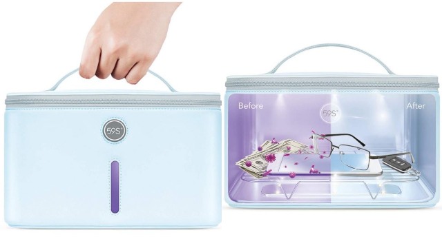 Le 59S UV Light Sanitizer Bag : ce sac cool tue 99,9 % des germes dangereux. Il ne produit pas d’ozone. Il possède 24 nœuds LED pour effectuer le travail en quelques minutes. Vous pouvez activer le processus de désinfection d’un simple clic.