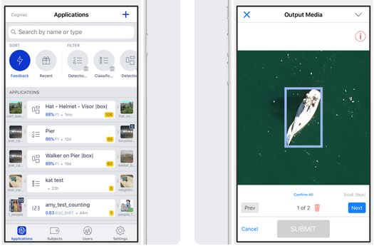 Nous avons également l’application Cogniac Cogniac : une autre application de vision numérique qui identifie les objets visibles dans vos images, vos vidéos et vos flux de caméra en direct. Vous serez également en mesure de former vos applications rapidement.
