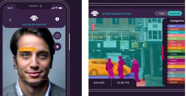 Finalement, nous avons l’application Fritz AI Fritz AI : cette application s’appuie sur le Fritz Swift SDK pour exécuter des modèles d’apprentissage automatique sur votre appareil en temps réel. Elle peut étiqueter des images en fonction de leur contenu, localiser des objets à l’intérieur des images et transformer des vidéos en direct.