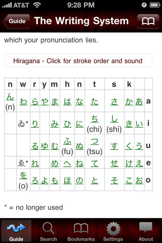 Japanese Alphabet Study Guide : contient tout ce dont vous avez besoin pour apprendre le hiragana, le katakana et le kanji. Vous pouvez passer en revue les caractères à votre propre rythme et même vous tester. Les prononciations audio sont également incluses.