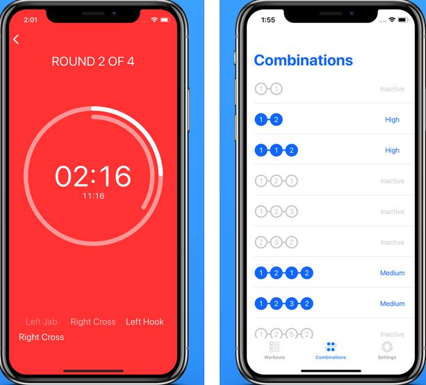 Boxing Coach & Workout Timer : cette application de minuterie de boxe pour iPhone s’intègre à Siri pour suivre vos séances de travail de boxe. Elle prend en charge jusqu’à 12 rounds de boxe, y compris les pauses et la phase de refroidissement.