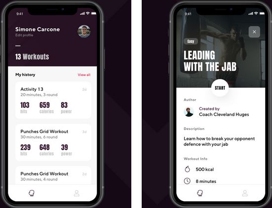 PunchLab : une application d’entraînement de boxe avec des séances de travail audio qui vous donne des combinaisons de coups de poing et de pied. Elle peut également suivre votre puissance de frappe, votre force et votre comptage. Elle fonctionne avec tous les types de sacs.