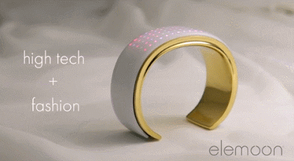 elemoon : un bracelet intelligent qui combine une interface tactile, un capteur d’activité et des lumières pour vous maintenir connecté. Il vous avertit lorsqu’un appel important arrive.