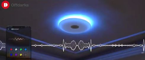 Offdark Music Ceiling Light : une autre lumière de plafond contrôlée par application avec fonction de synchronisation musicale. Le backlight a 16 millions de couleurs à choisir. Cette lampe est équipée de haut-parleurs surround 360 degrés.