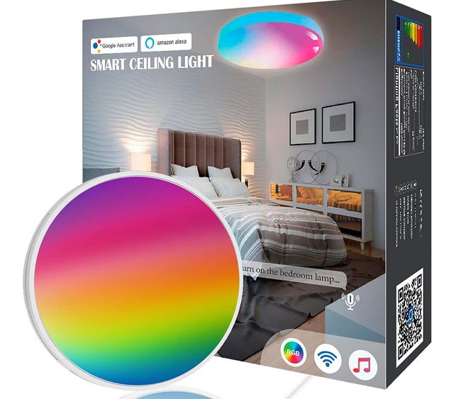 Oeegoo Ceiling LED Light : un plafonnier intelligent compatible Alexa avec une température de couleur ajustable de 2700k à 6500k. Il a une superficie de couverture de 161 ft². Il est équipé d’une fonction de mémoire intégrée.