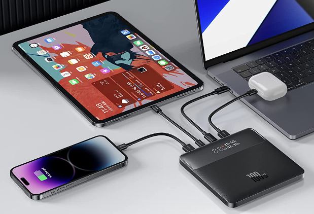 Au cours des dernières années, nous avons présenté de nombreuses banques d’alimentation pour smartphones et tablettes. Cette banque d’alimentation Baseus 20000mAh Blade HD peut également gérer les MacBooks. Ce chargeur rapide 100W dispose de 2 ports USB-C PD et de 2 ports USB-A. Elle a un design slim, mesurant seulement 0,7 pouce d’épaisseur.