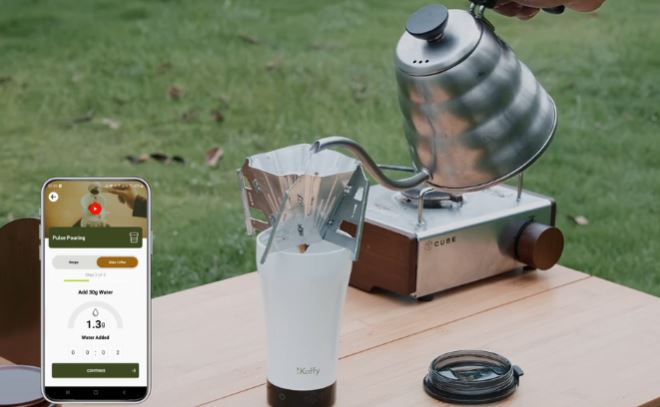 La balance intégrée dispose d’une connectivité Bluetooth et d’une précision de 0,1 g. L’application complémentaire est disponible pour les appareils iOS et Android. Elle dispose d’un mode DIY qui vous permet de choisir comment vous souhaitez préparer votre café. Le GoBrew fonctionne sur une batterie de 400 mAh et dispose d’un affichage LED qui affiche l’état, le poids et d’autres informations.