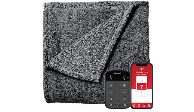 Voici une couverture électrique connectée WiFi qui vous tient au chaud jour et nuit. La Sunbeam LoftTec Heated Blanket dispose de 10 réglages de chaleur. Elle se combine avec votre smartphone pour vous permettre de modifier facilement les réglages de chaleur ou de préchauffer votre lit depuis n’importe où. Elle dispose également d’un minuteur pouvant aller jusqu’à 10 heures.