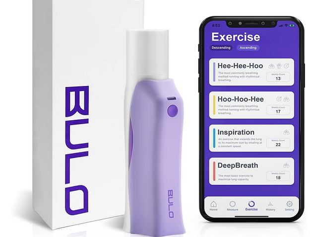 L’application affiche vos données hebdomadaires et mensuelles. Vous pourrez voir le volume, la puissance et l’âge pulmonaire sur votre téléphone. L’entraîneur de respiration BULO est assez facile à utiliser : il suffit de le tenir dans la bouche, d’expirer pendant 5 secondes et vous pourrez voir vos résultats dans l’application.