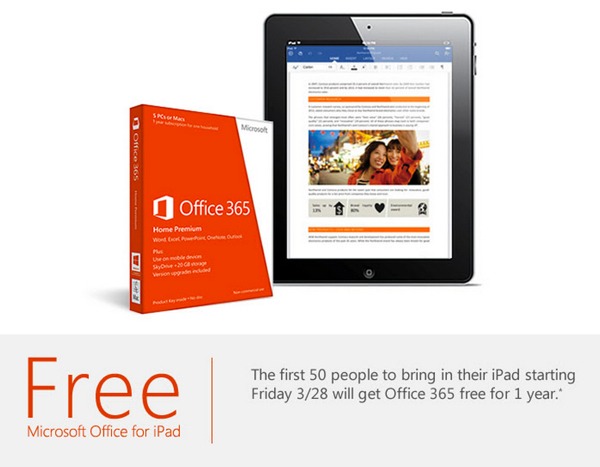 La sortie officielle d’Office pour iPad a excité certains. Vous aurez besoin d’un abonnement Office 365 pour profiter pleinement de votre expérience. Cela vous coûtera 99 $ par an. Mais comme Microsoft est très généreux avec ses promotions, il a décidé d’offrir la première année d’abonnement Office à 50 personnes qui apportent leur iPad dans un magasin Microsoft.