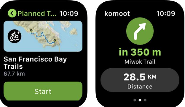 Komoot : un planificateur de courses qui vous aide à essayer de nouvelles aventures. Il dispose d’une navigation vocale étape par étape. Vous pouvez afficher les points recommandés par d’autres et suggérer les vos. Il vous permet de télécharger des cartes pour une utilisation hors ligne.