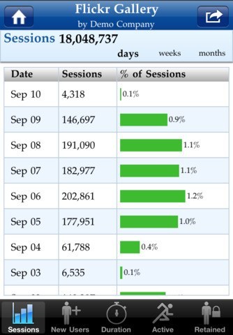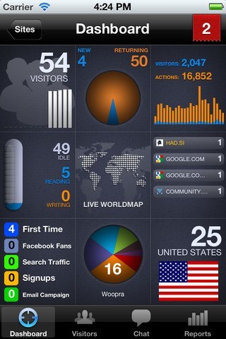 Audience : une autre application Google Analytics cool pour iPhone. Ce qui est agréable avec cette application, c’est son interface. Elle a de grands chiffres et de belles couleurs. L’interface utilisateur est très conviviale.