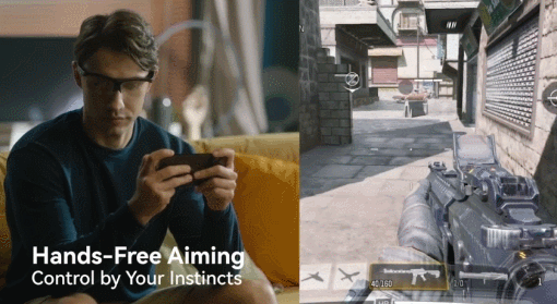 Voici le Mocap X : un paire de lunettes de capture de mouvement qui vous permet d’interagir avec vos jeux à l’aide de mouvements de tête. Il dispose d’une construction légère et d’un capteur de mouvement 6 axes. Il a une latence faible de 20ms, vous permettant ainsi de performer sans compromis majeur dans vos jeux favoris. Ce dispositif portable offre également une protection contre la lumière bleue. Vous pouvez voir le fonctionnement du Mocap X dans l’image suivante :