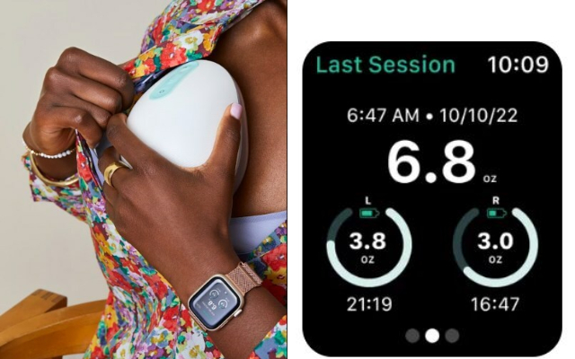 Les mamans peuvent maintenant utiliser leur Apple Watch pour afficher et suivre les sessions de tirage sur leur poignet. Elles peuvent voir le volume de lait pompé et la quantité de lait produite par pompe en temps réel.
