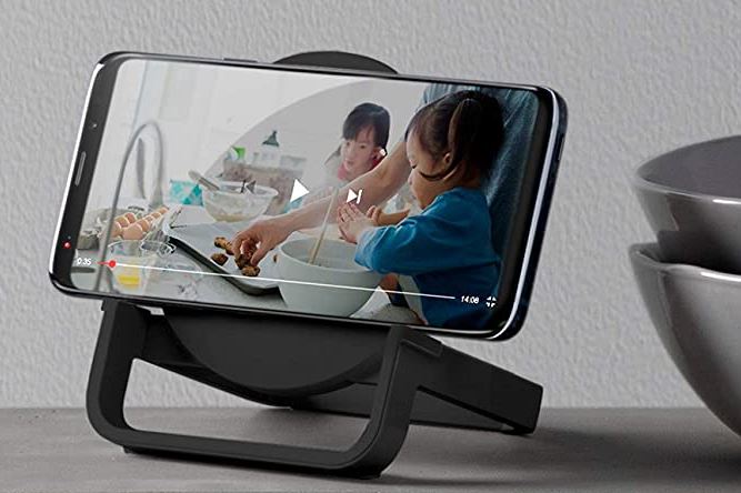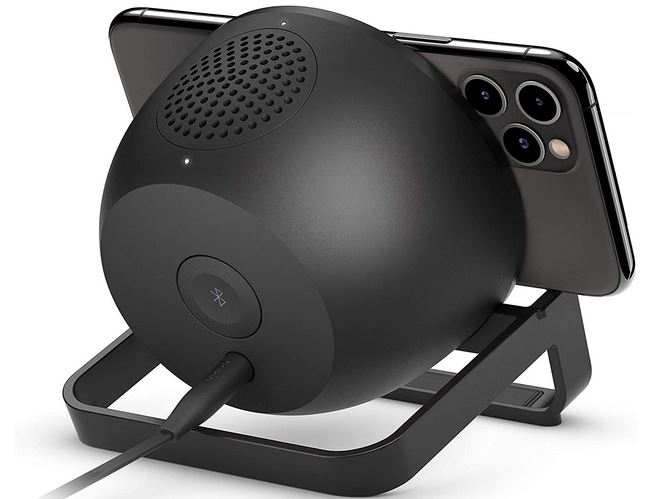 Voici le haut-parleur Belkin BOOST↑CHARGE Wireless Charging Speaker : un haut-parleur Bluetooth qui maintient votre téléphone et le charge. Il propose une charge rapide à des vitesses allant jusqu’à 10W pour les appareils compatibles Qi, tandis que vous écoutez de la musique et regardez des vidéos. Il peut gérer votre téléphone en mode portrait ou paysage.