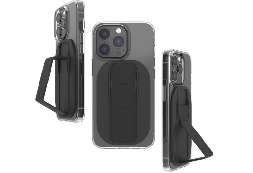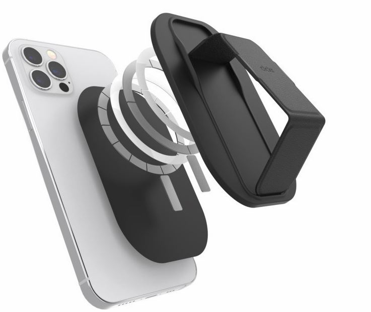 Voici le support MagSafe Stand & Grip CLCKR : un accessoire pour iPhone 12/13 qui s’attache à un étui compatible MagSafe et vous permet d’utiliser votre appareil sans les mains en mode portrait, paysage et en vue inclinée. Il est équipé d’un aimant 3500G pour attacher votre appareil et rester en place. La poignée vous permet de manipuler votre téléphone en toute sécurité en déplacement.