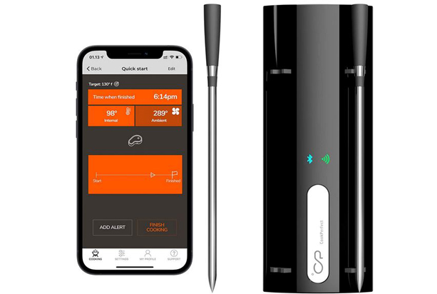 Cuisiner vos viandes à la perfection chaque fois est beaucoup plus facile lorsque vous disposez d’un thermomètre intelligent pour surveiller la température de cuisson avec précision. Le CookPerfect Pro est un thermomètre à viande sans fil avec 4 capteurs dans chaque sonde pour vous donner des lectures de température centrale précises. Il possède un dock rechargeable qui peut accueillir 2 sondes.